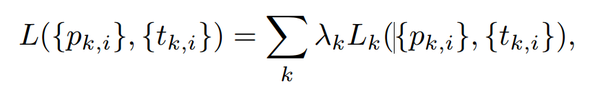 k是pyramid-anchors的索引(k=0,1,2分表表示,人脸,人头和身体)i是一个anchor的索引,并且