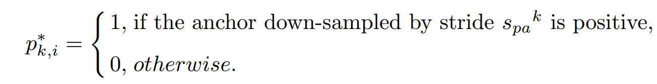 ,我们按照下面的公式来定义第k个pyramid-anchor的标签: