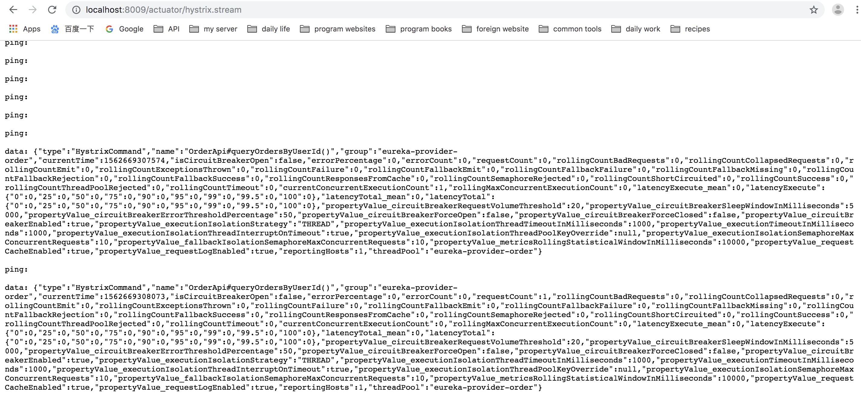 当访问服务后,再看监控台,可以看到监控的内容,以json格式输出,