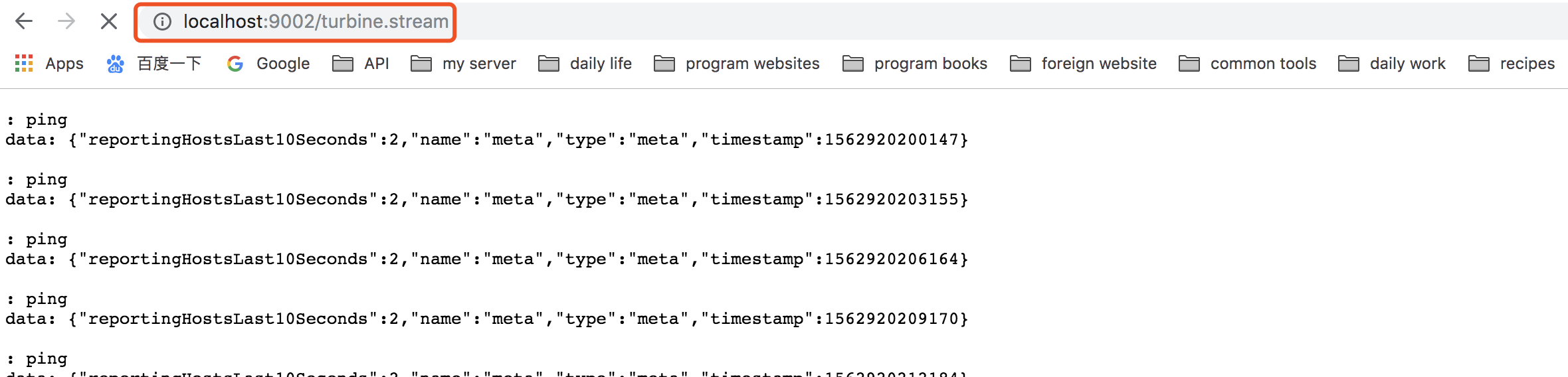 服务启动后直接访问http://localhost:9002/turbine.stream地址,效果如下: