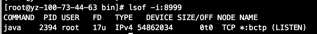 2、lsof -i:8999查看端口状态: