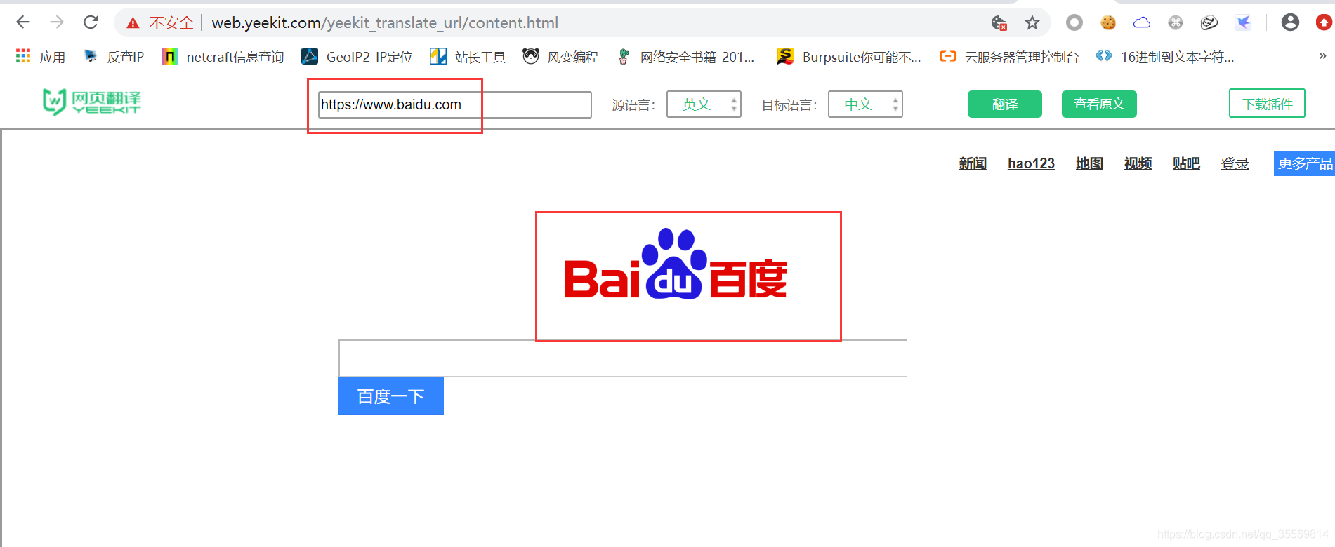 再举个形象的例子,网页翻译,提供了让我们输入url的接口,然后系统去访问,这里是做过防护的,如果没有防护,我们就可以直通内网,如下图