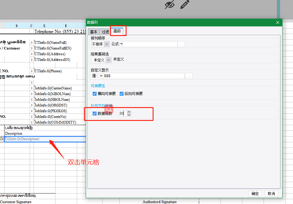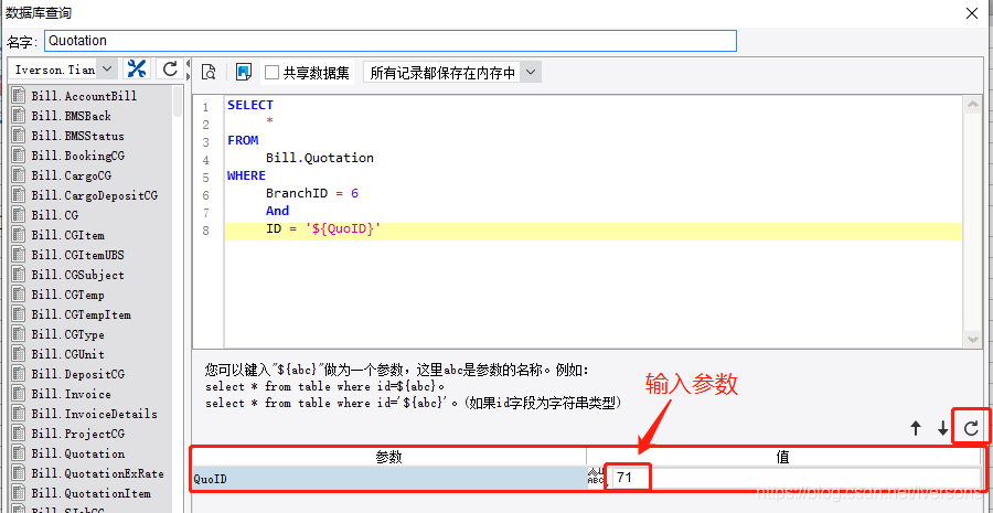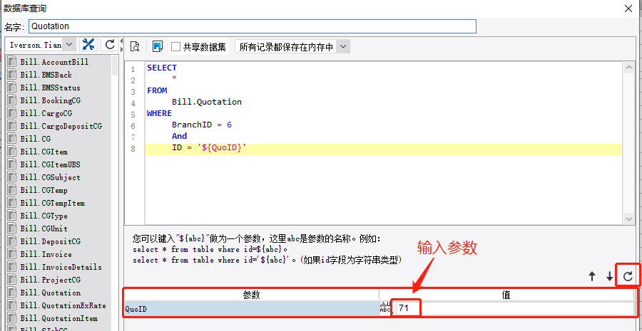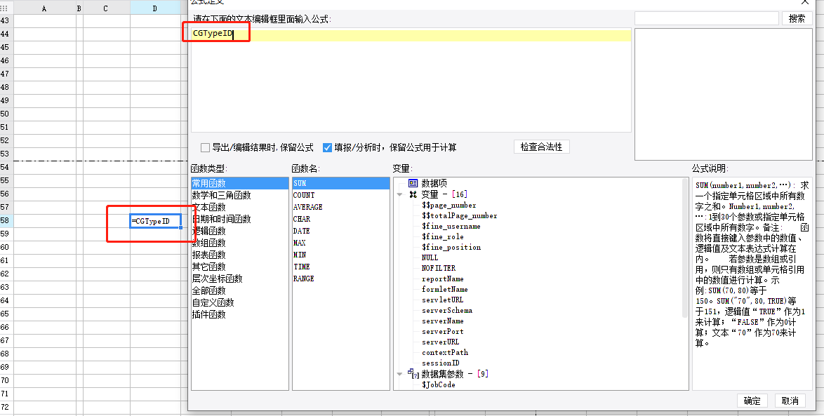 在选中的单元格中输入:=参数,如:'=CGTypeID',然后鼠标双击该单元格