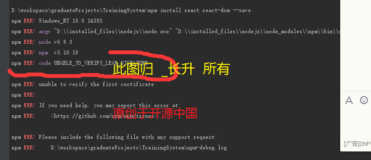 1.用npm install 安装包时出现错误Error:UNABLE_TO_VERIFY_LEAF_SIGNATURE错误