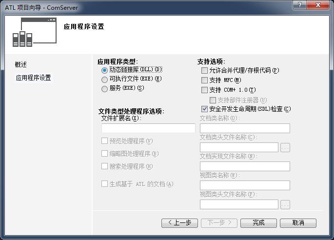 在弹出的窗口中填写C++类中和COM组件类中的名称,ProgID一般填写为前项项目名称,后项类名称