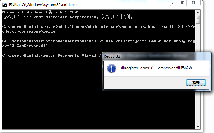 使用regsvr32的命令,对dll文件进行注册,如下图: