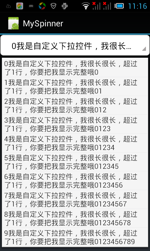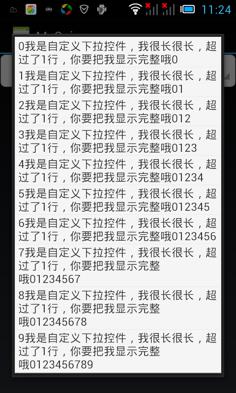 至此,关键代码已贴出,关键是 PopupWindow 与 AlertDialog 的运用。此控件的用法非常类似于 Spinner,完整代码请看自定义可显示多行的 Spinner