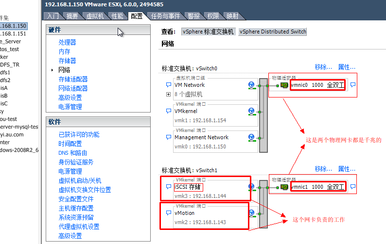 2: 需要为群集下的每个ESXi主机添加一个标准交换机让这些高级功能使用.