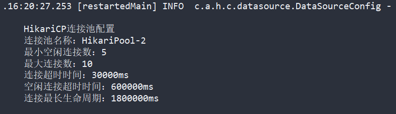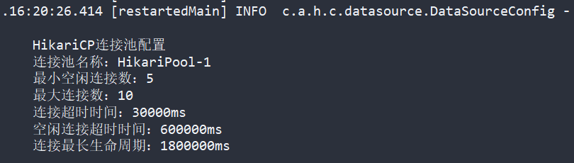 String info = "\n\n\tHikariCP连接池配置\n\t连接池名称:" +