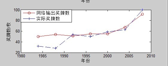 legend('网络输出奖牌数','实际奖牌数');