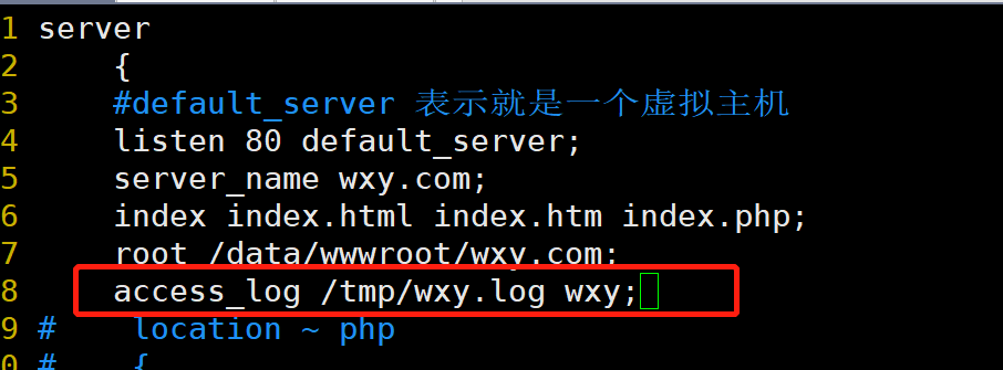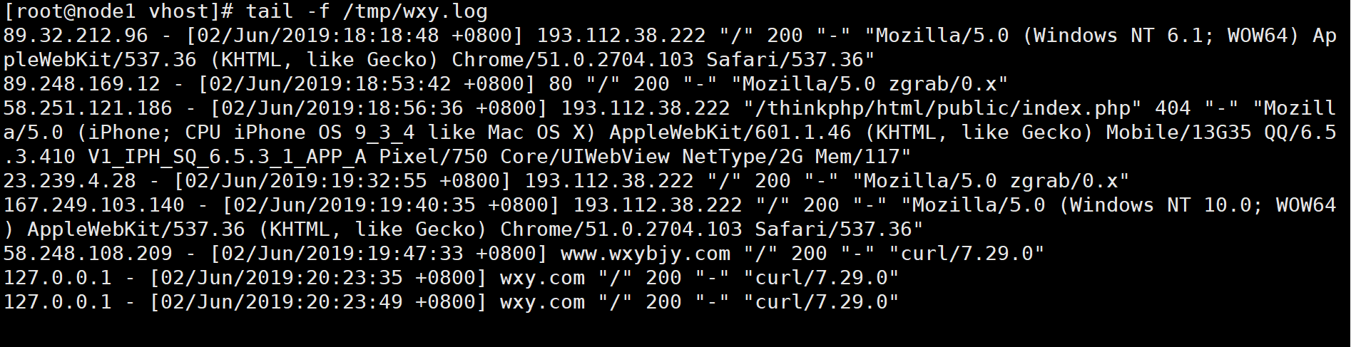 access_log /tmp/wxy.log combined_realip;/tmp/wxy.log是日志路径