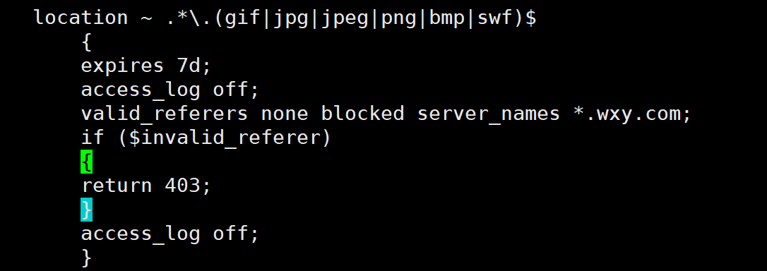 valid_referers none blocked server_names *.wxy.com; if ($invalid_referer) { return 403; }