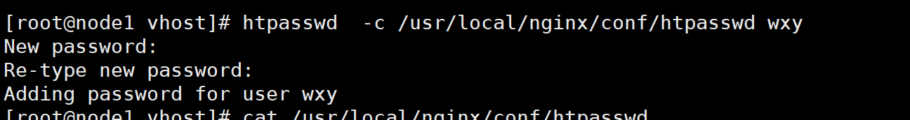 yum install httpd)htpasswd -c /usr/local/nginx/conf/htpasswd wxy