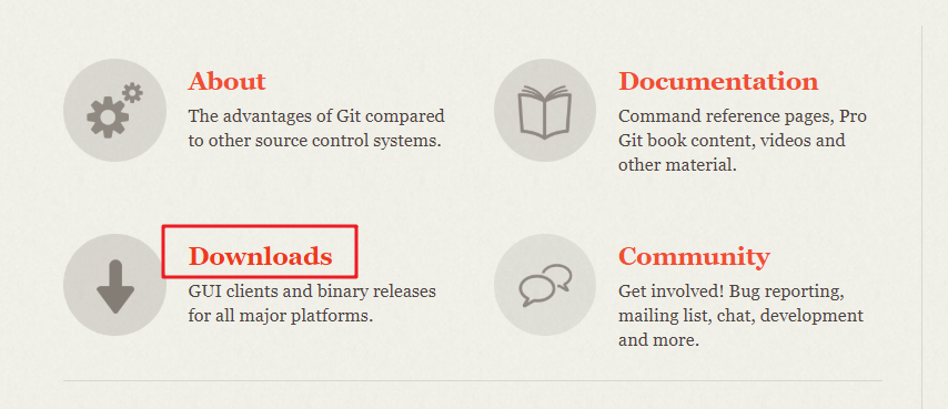 2. 在 Downloads 页面, 点击 Windows 就会开始下载最新版本的 Git 。