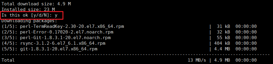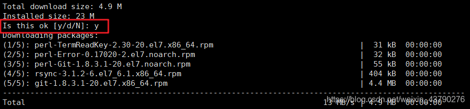 2. 当提示是否确认安装时,输入y 回车即可,当然也可以在上面的命令后直接加 -y ,跳过询问。