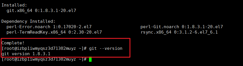 3. 当提示 Complete! 时,说明git安装成功了,输入git --version即可查看 git 的版本。