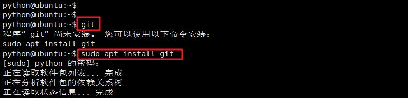 1. Ubuntu 系统或虚拟机也是一样的,如果默认没有安装git,可以很简单的安装。
