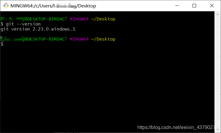 11. Git Bash 如下图所示, 输入 git --version 可以显示 git 的版本。说明已经安装成功了。