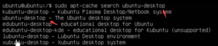 Sudo apt-cache search ubuntu-desktop,如果存在的话,直接进行第(5)步。否则执行第二步。