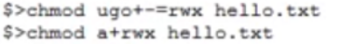 权限可以使用+或者-或者=。为所有用户设置权限可以一个个的写出来ugo,也可以直接用a表示全部用户: