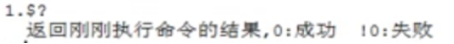 %?表示前面一个命令执行的结果。前面执行了一个删除的命令执行失败了,所以查看命令的执行结果是1,1表示的是失败,0表示的是成功: