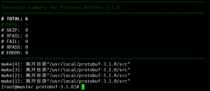 tar -zxvf protobuf-3.1.0.tar.gz -C /usr/local/ cd protobuf-3.1.0/ # 如果使用的不是源码,而是release版本 (已经包含gmock和configure脚本),可以略过这一步 ./autogen.sh # 指定安装路径 ./configure --prefix=/usr/local/protobuf #编译 make # 测试,这一步很耗时间 make check make install # refresh shared library cache. ldconfig