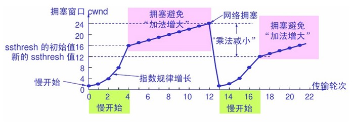 当cwnd>=ssthresh时,执行拥塞避免算法,一般ssthresh=65535字节