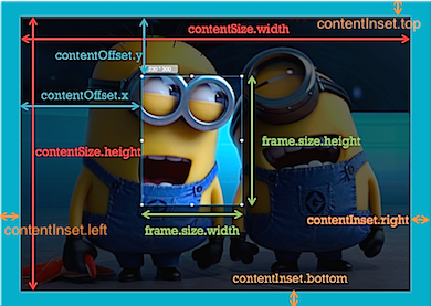 contentSize //定义内容区域⼤⼩, contentSize>frame.size,可以滚动