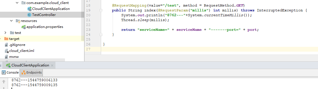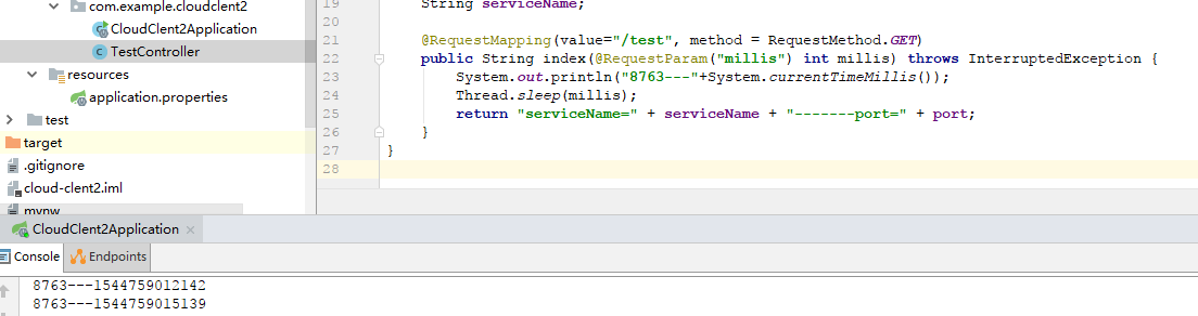 eureka-feign调用client的方法,通过传参数millis来控制client线程休眠的时间