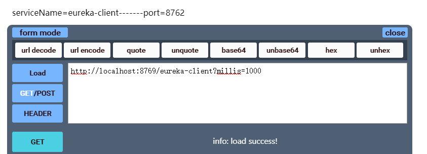 结果: 打印port=8762----------调用eureka-client服务时长1013ms