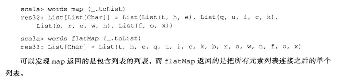 6.flatMap并不一定用于元素是序列的列表,他只需要应用的函数返回的结果是 GenTraversableOnce 即可(列表的父类),例如: