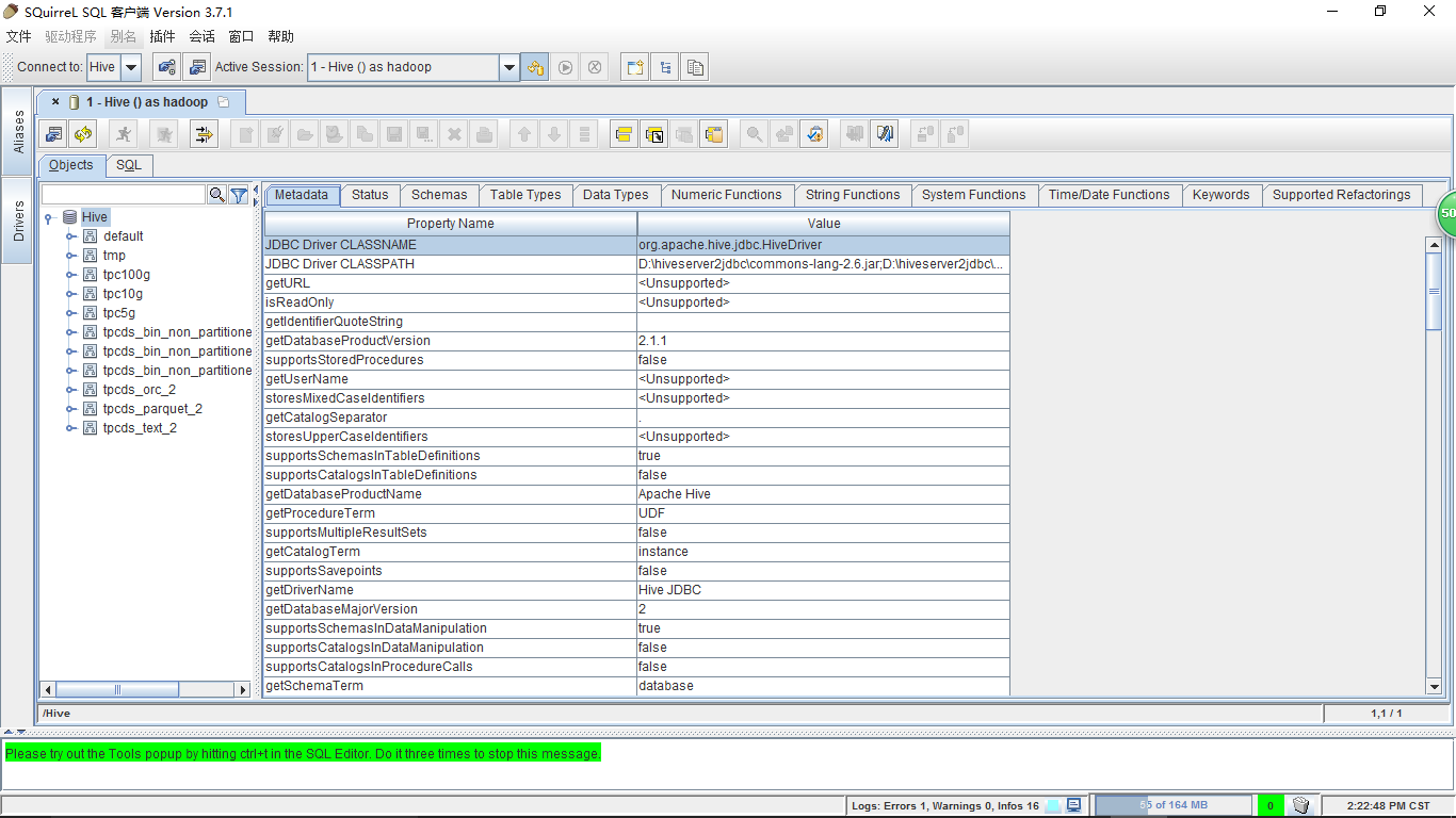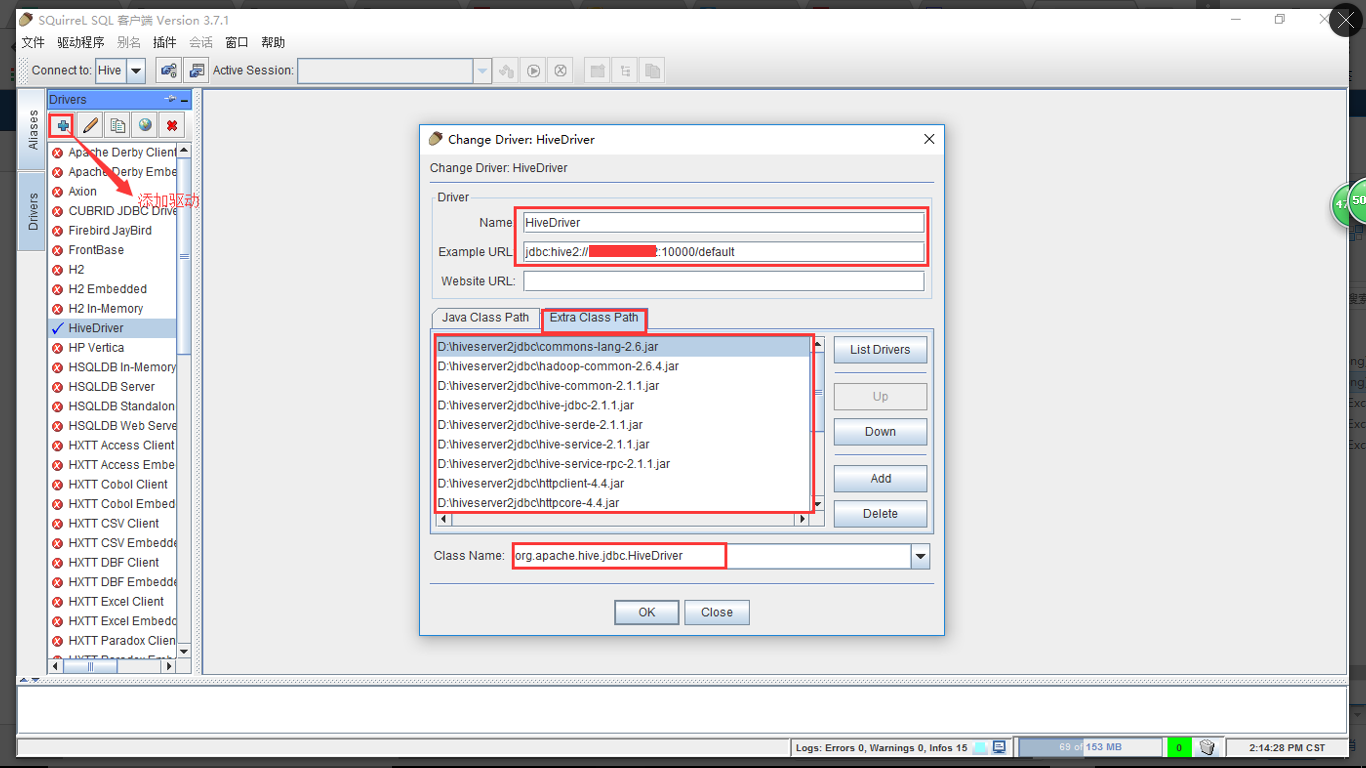 下面介绍额配置SQuirrel SQL Clien访问hive。