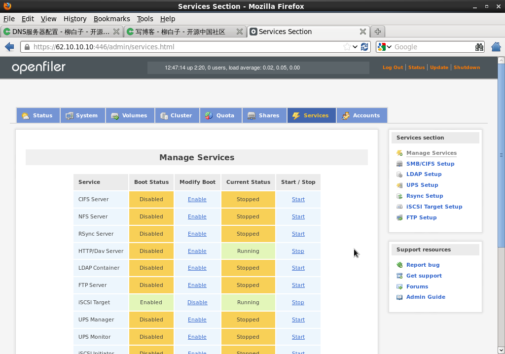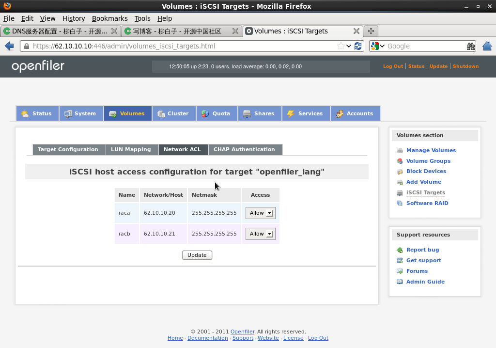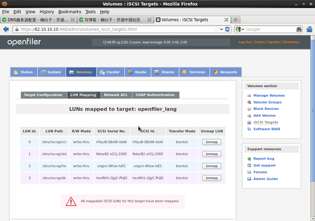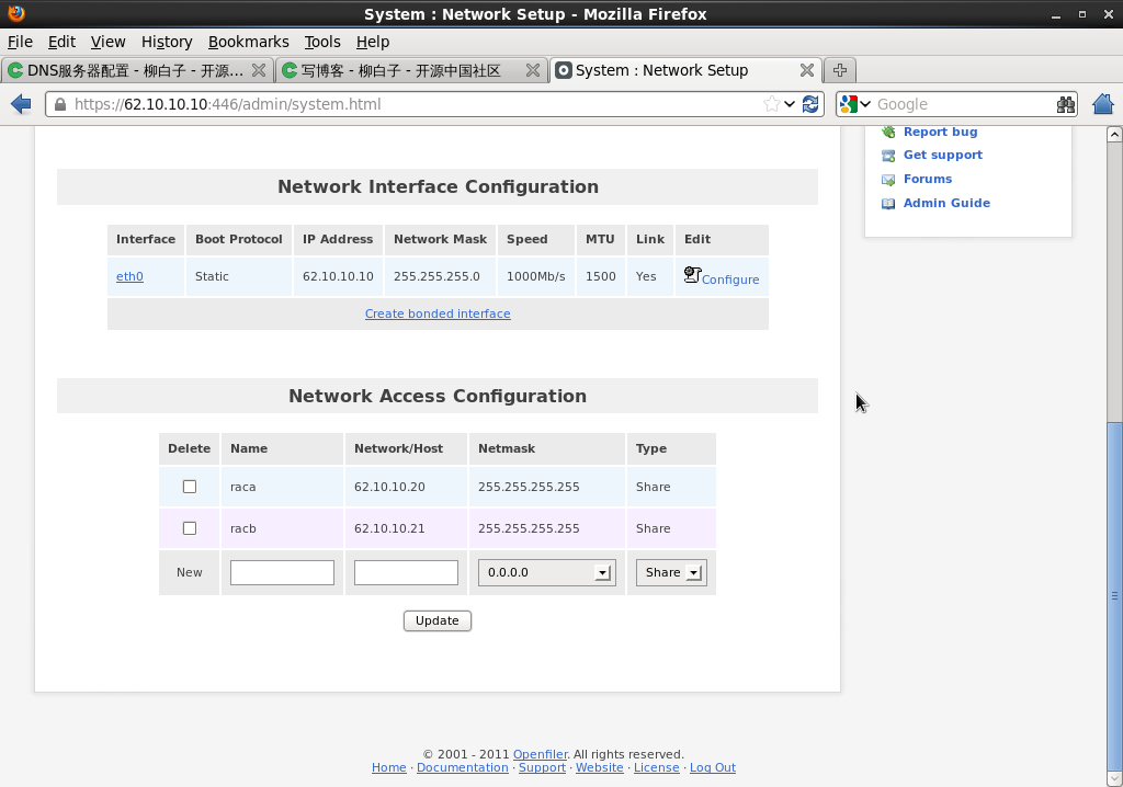 https://62.10.10.10:446/ 用户名:openfiler 密码:password