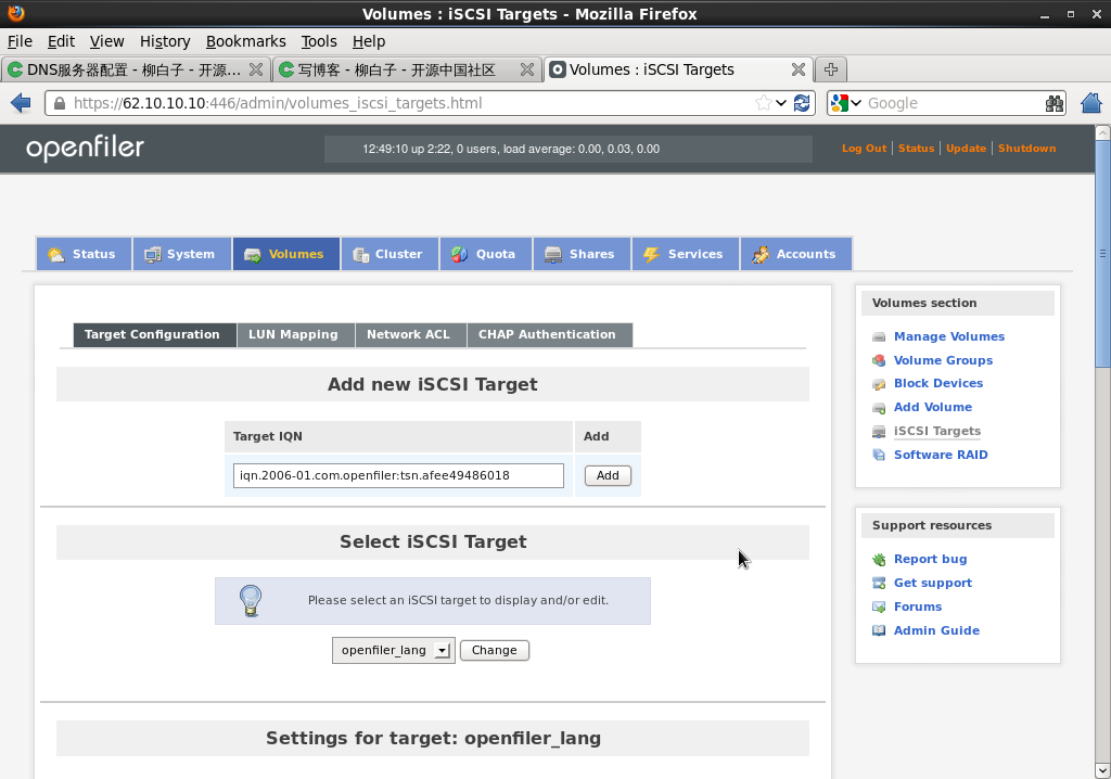 --->iSCSI Targets (增加一个iSCSI Targets组,然后和我们的磁盘进行映射)