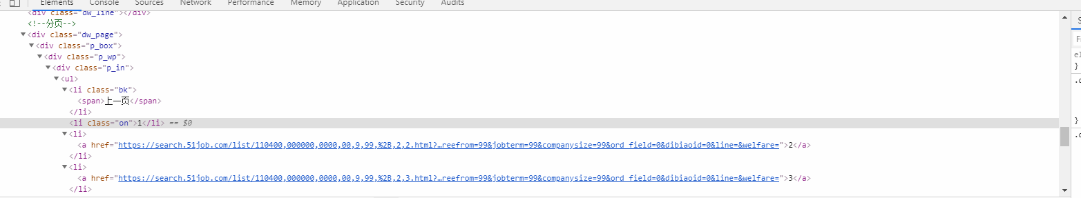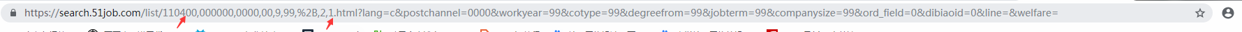 第一个箭头的位置为招聘网站的地区编号,第二个箭头的位置为网页的目前所在的页数