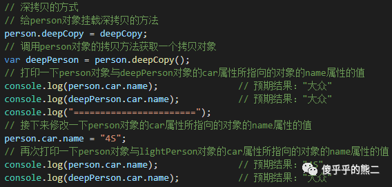 接下来就将深拷贝的方法代入到对象中进行操作: