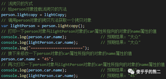 接下来就将浅拷贝的方法代入到对象中进行操作: