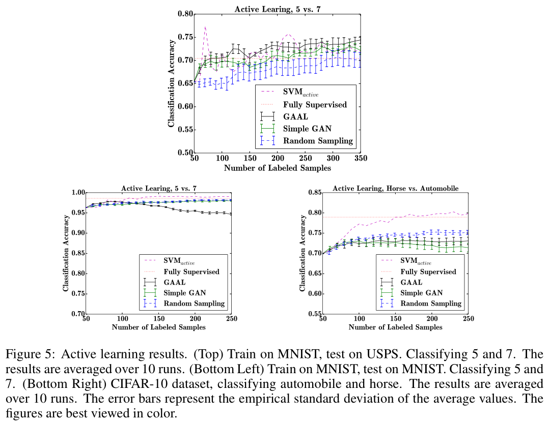 作者反复强调:本文是第一个将 GAN 和 active learning 进行结合,并且提供了 numerical results。此外,本文的主要目的是基于 GAN 和 active learning 提出一种 framework,并不是重在提升模型性能(如,分类问题的准确率等)。