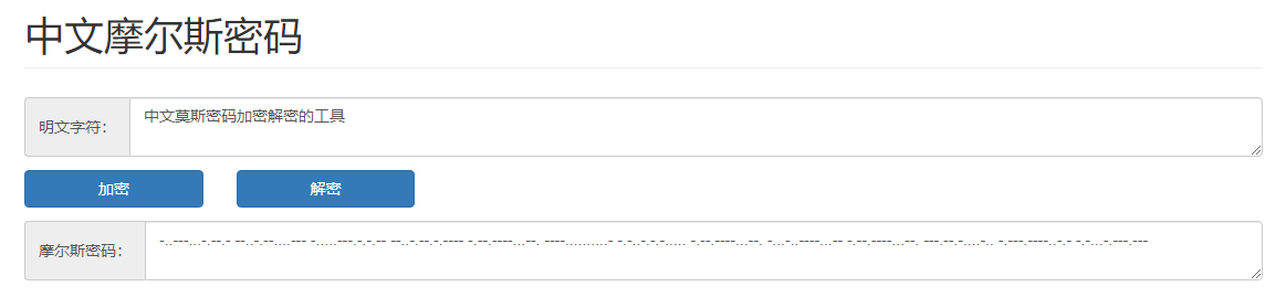 本工具可以将英文字母、数字和标点符号字符以及支持UNICODE字符包含中文中文汉字等字符加密转换成摩尔斯电码,同时可以将摩尔斯密码解密转换成可识别字符。