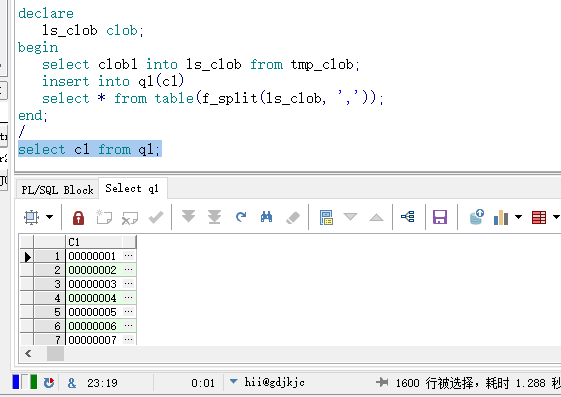 然后,前些日子帮朋友调试一个存储过程的时候,发现传了个贼长的字符串进来,用上面的正则 + connect by的方法处理起来就比较慢,而且也不支持超长字符串的拆分,百度折腾了下,决定写个函数处理。