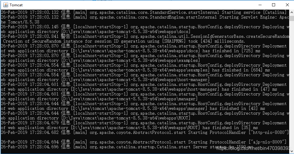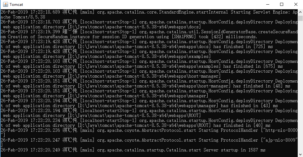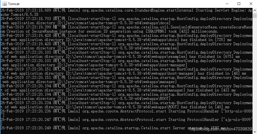 刚开始还以为是conf下面的server.xml文件对tomcat服务器编码设置的问题,改了都没反应,对可能出现的情况都排查了一下,就是无法正常显示,最后才想到,控制台的输出,根本上还是一种日志,进而通过修改conf下logging.properties文件的以下属性,才最终解决这个乱码,方法如下: