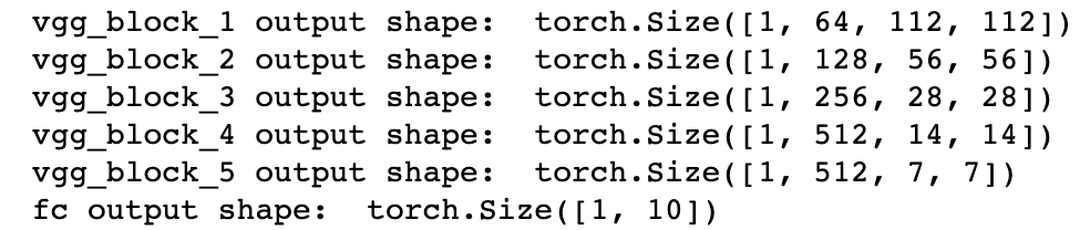 conv_arch = ((1, 1, 64), (1, 64, 128), (2, 128, 256), (2, 256, 512), (2, 512, 512))