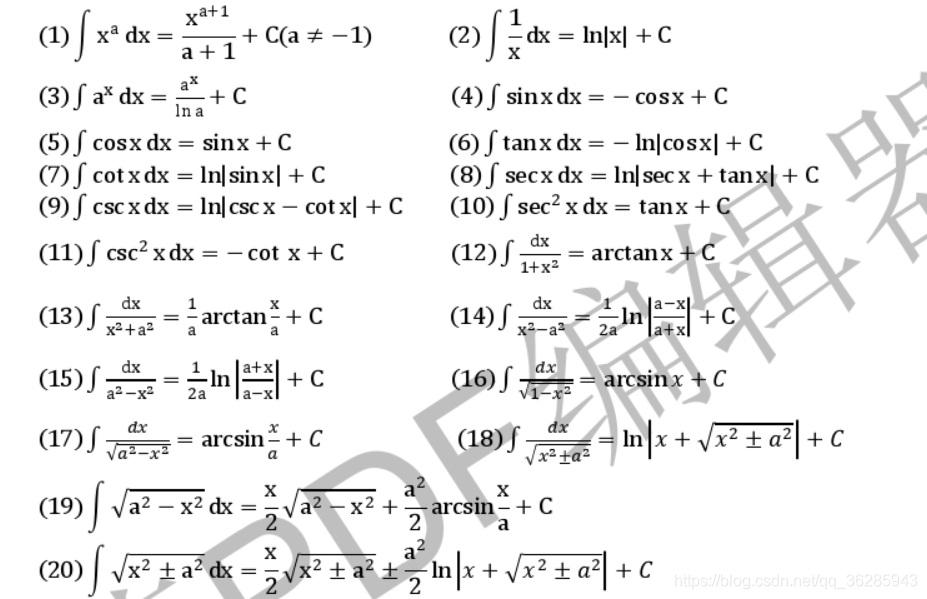 2. 原普通幂函数: ∫ x^u dx = x^(u+1) / (u+1) + C