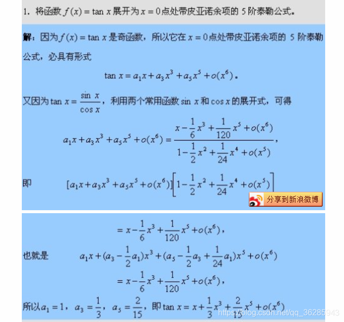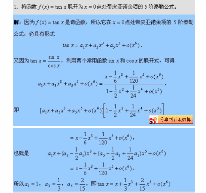即 f(x) = f(0) + f'(0)*x + f''(0)/2! * x^2 + ...... + f^n(0) /n! * x^n + Rn(x)