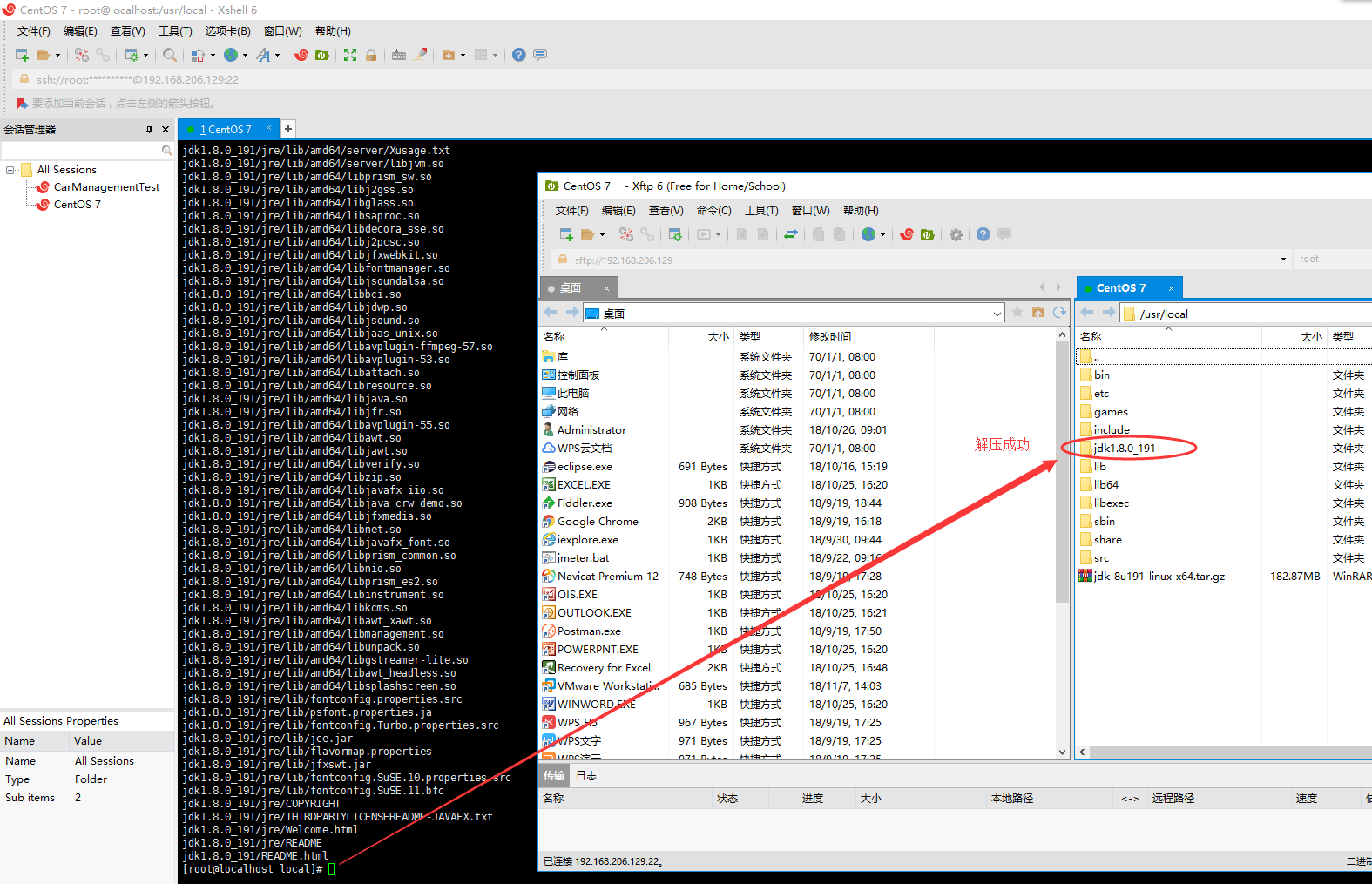 ④将jdk压缩包解压到/usr/local目录下,xshell输入命令: