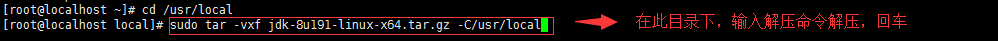 sudo tar -vxf jdk-8u191-linux-x64.tar.gz -C/usr/local