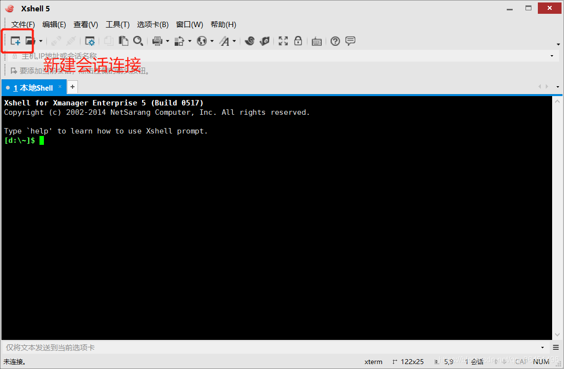 首先输入账号密码,登录XShell,然后点击菜单栏“新建按钮”: