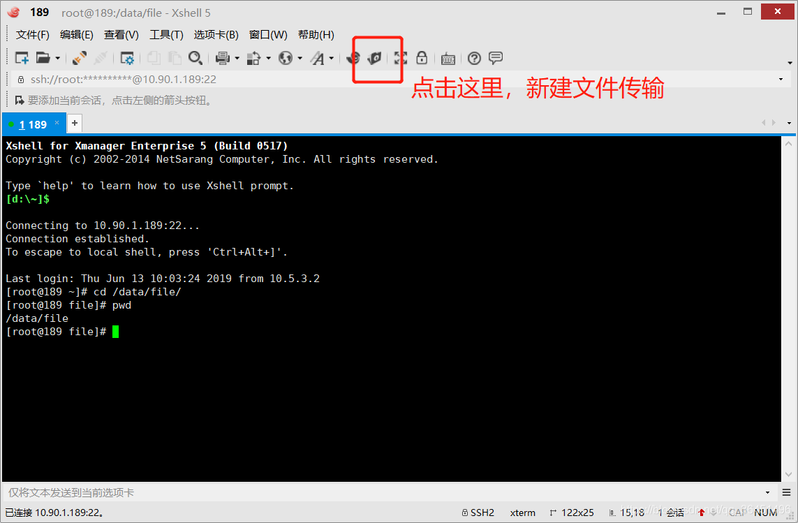 新建连接完成后,我们可以通过命令进入要上传图片的服务器中的目录,比如使用命令 cd /data/file: