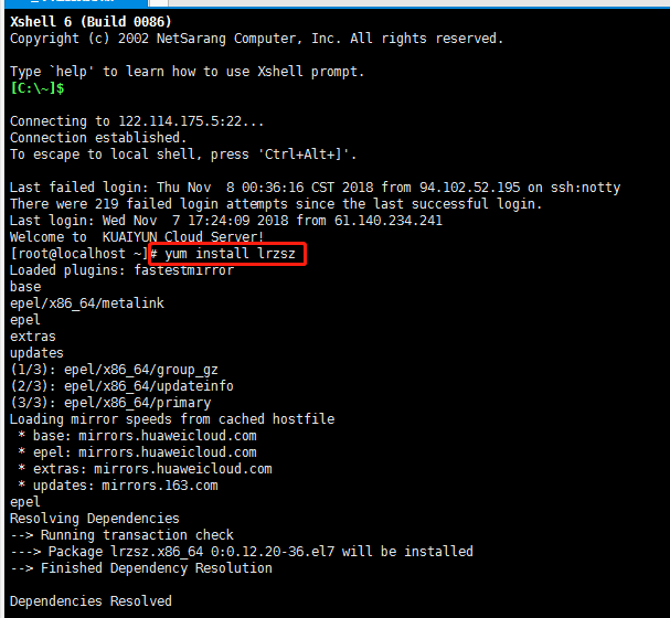 1,执行yum install lrzsz 安装lrzsz工具包,已安装的跳过