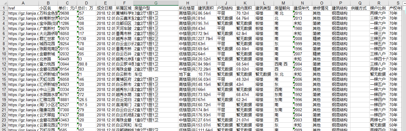 使用python3.7对链家网中广州二手房的交易数据进行爬取,并使用python-highcharts对爬取到的数据进行可视化分析。